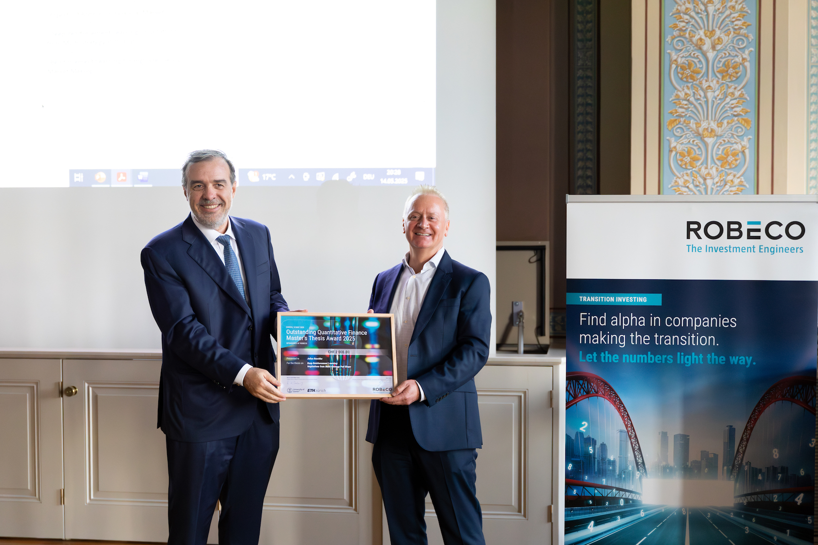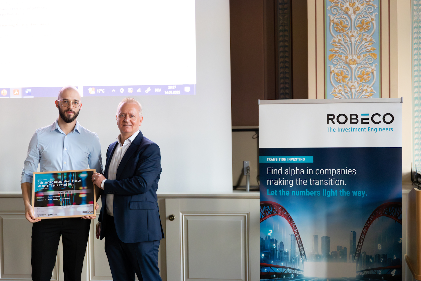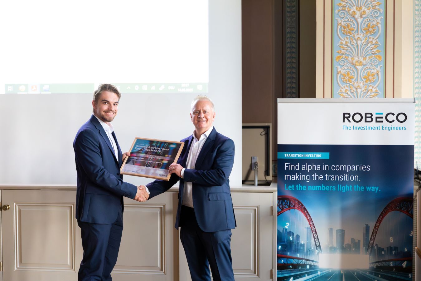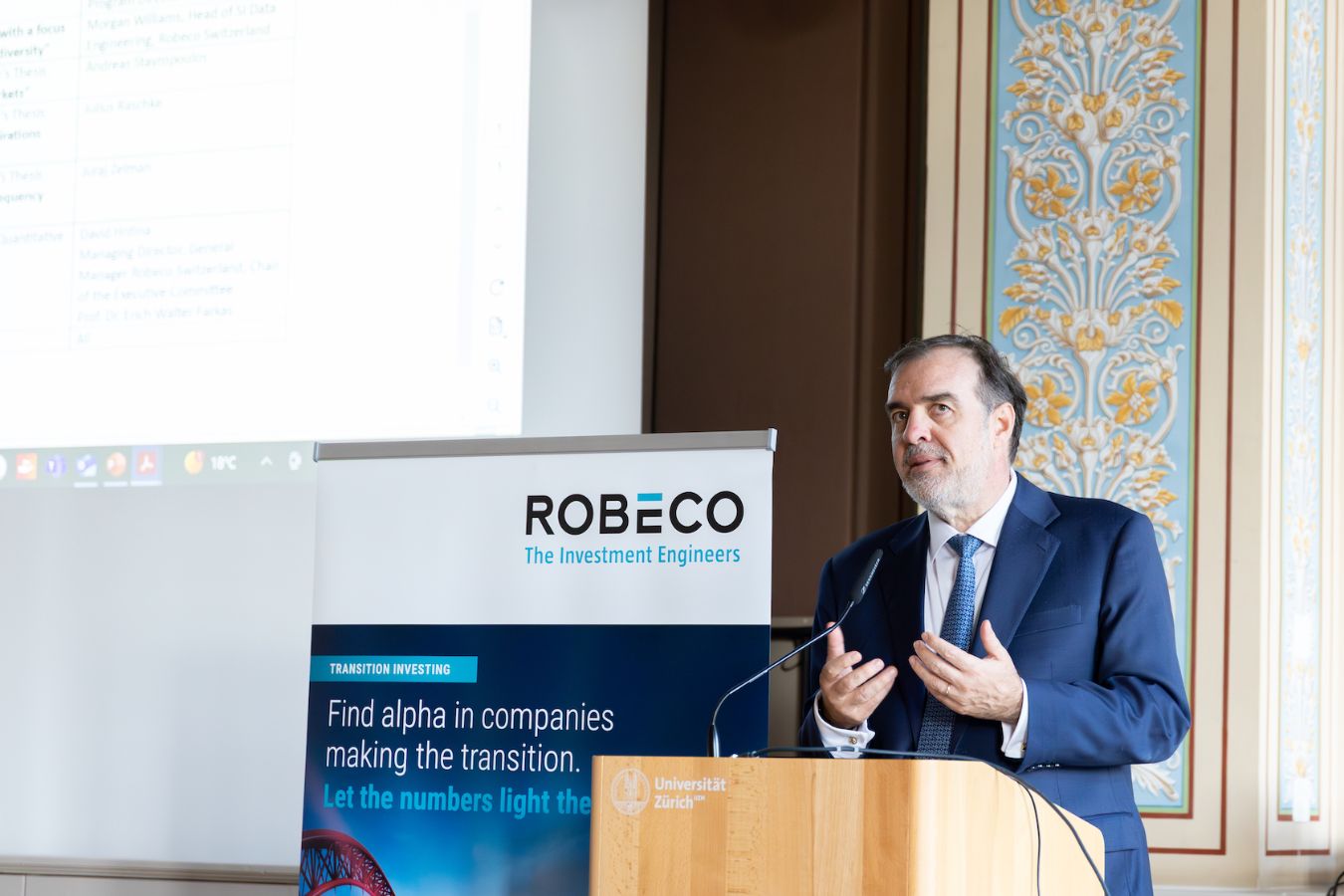 - The program then proceeded to the award ceremony, led by David Hrdina, Managing Director, General Manager Robeco Switzerland, Chair of the Executive Committee and Walter Farkas.