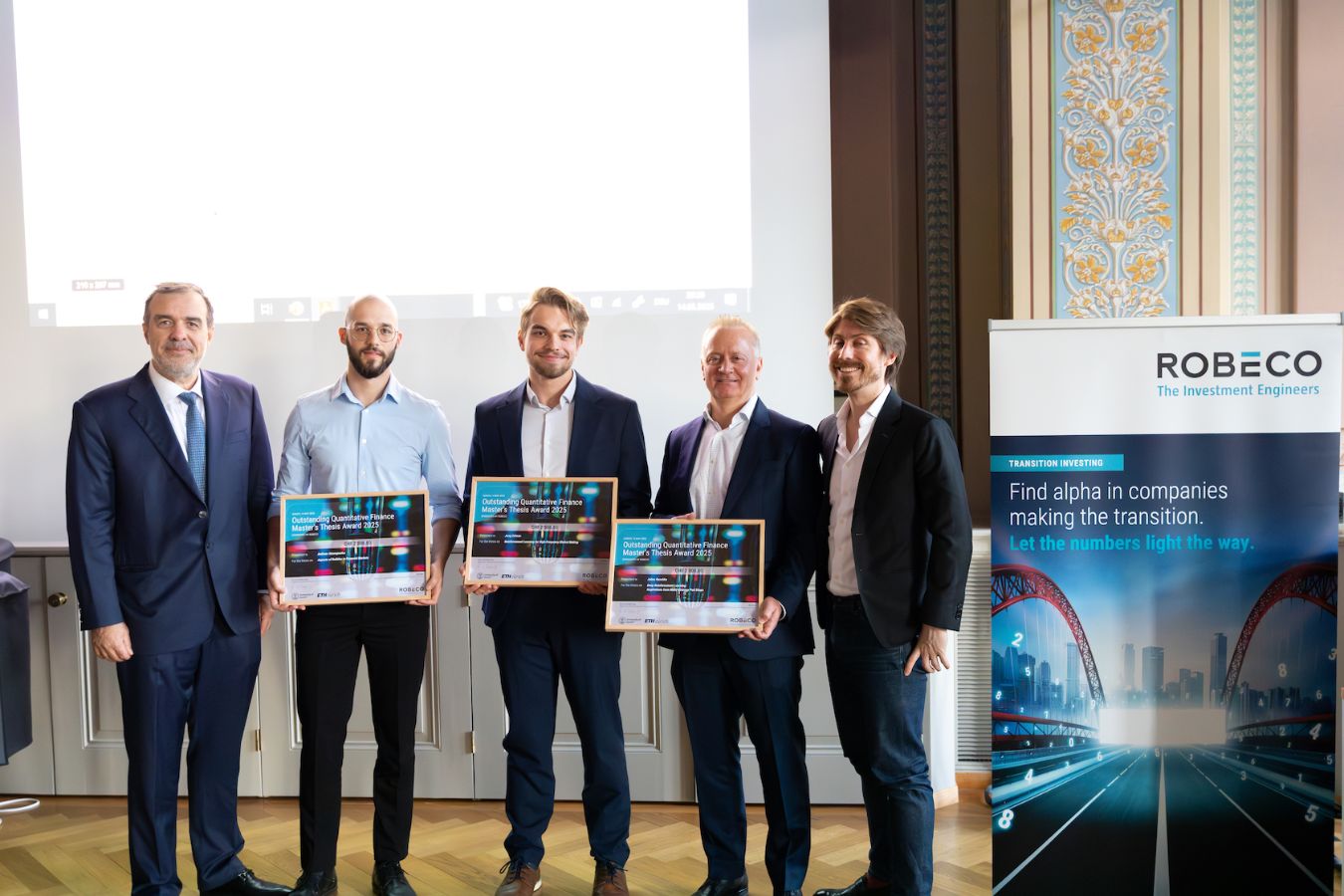 David Hrdina, General Manager of Robeco Switzerland, added: “On behalf of Robeco, I’m proud to congratulate Julius, Juraj, and Andreas for their impressive contributions to quantitative finance. Our collaboration aims to unite top experts in sustainable investing from both academia and industry in a truly interdisciplinary way. This partnership not only advances research and its practical application but also strengthens Zurich and Switzerland’s position as a leading hub for sustainable finance.”