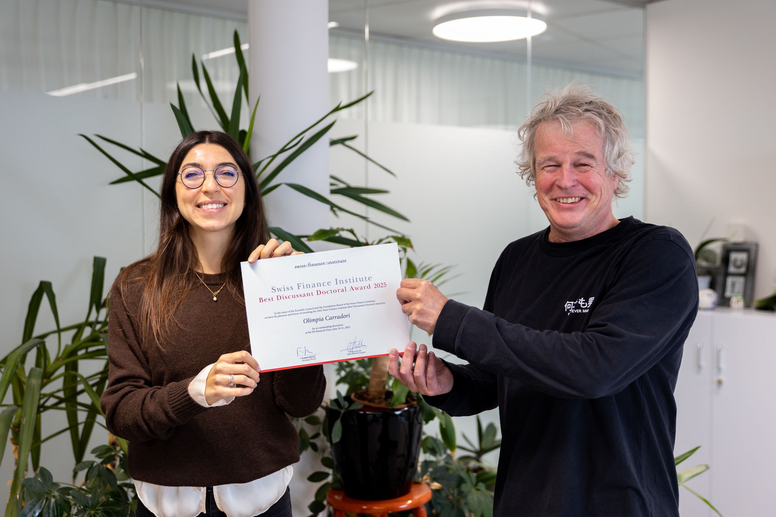 We are proud to share that Olimpia Carradori, PhD Candidate at our Department of Finance and member of the Swiss Finance Institute (SFI) PhD Program, has been awarded the SFI Best Discussant Doctoral Award 2025.