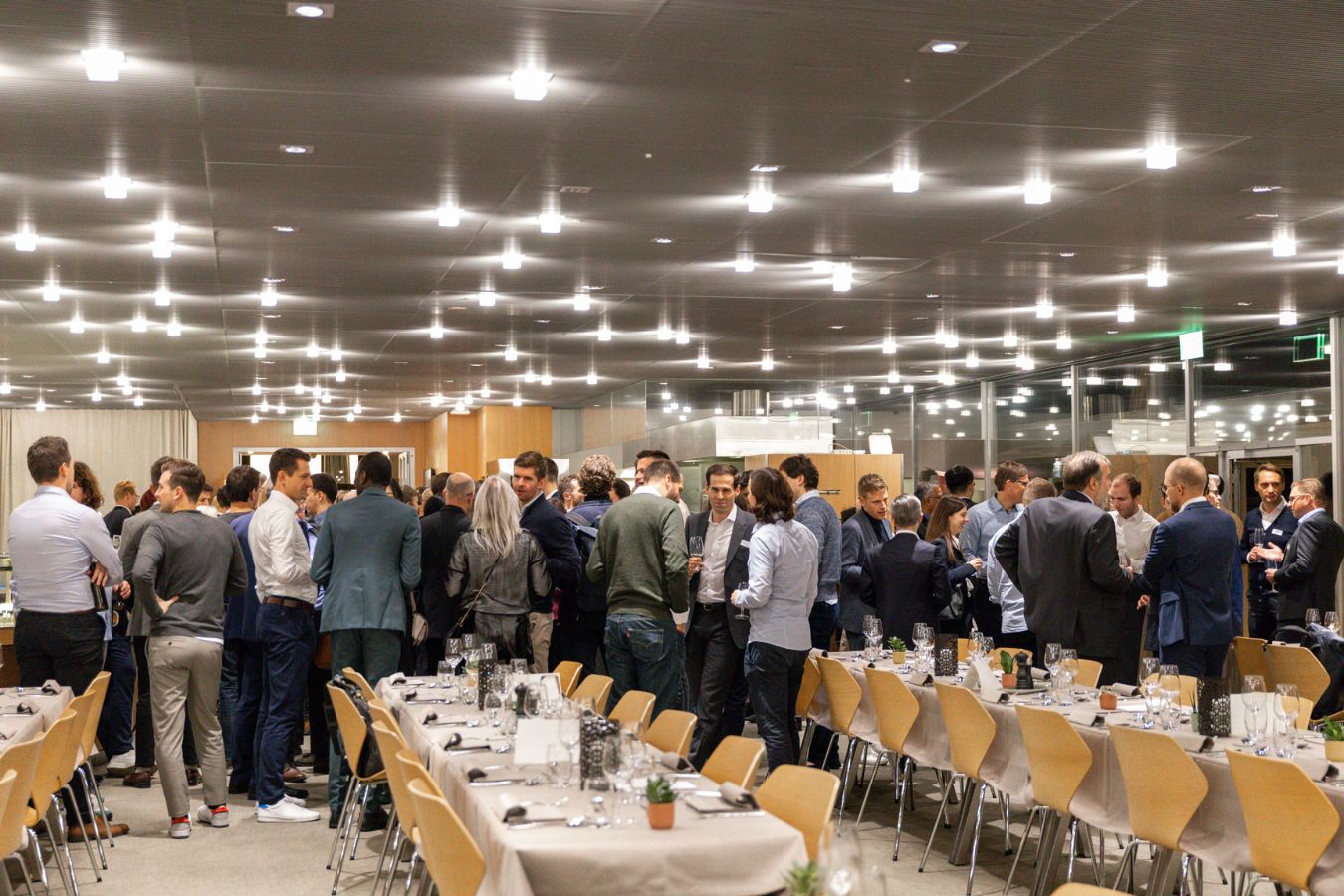 The second part of the pleasant evening took place at the Dozentenfoyer at the top of ETH with an apéro and a wonderful seated dinner. With his funny anecdotes alumnus Akilesh Matur made everybody laugh. The last talk of the evening was held by Antonello Cirulli, president of the very active "Zurich Quantitative Finance Alumni" (ZQFA) organisation, who "in normal times" takes care of the alumni gatherings.