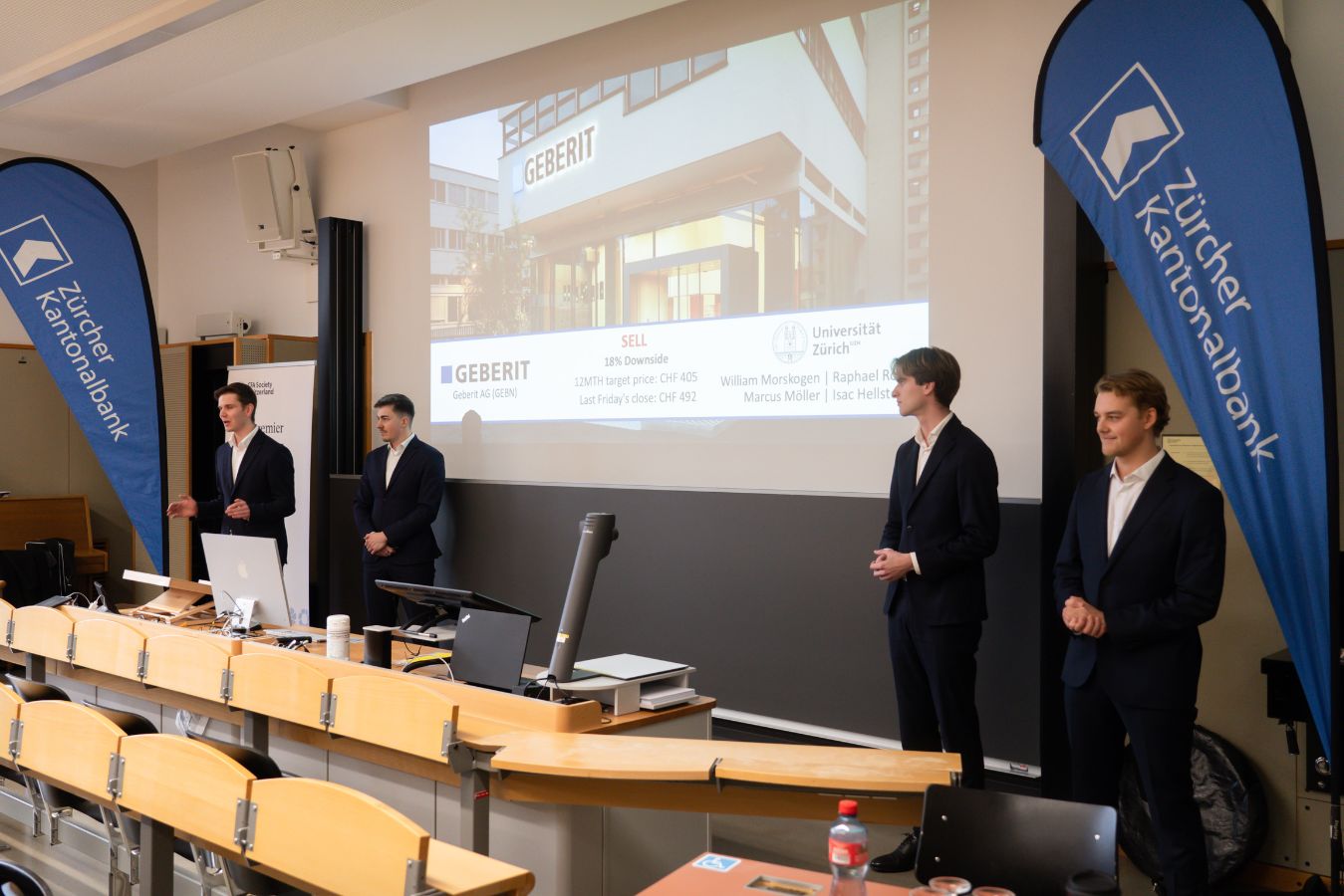 Since last fall, students have been regularly gathering to study and apply the practices of a financial analyst. This includes various activities like company visits at Geberit in Rapperswil-Jona, collecting data, conducting analysis, and producing informative reports with recommendations to buy, hold, or sell.