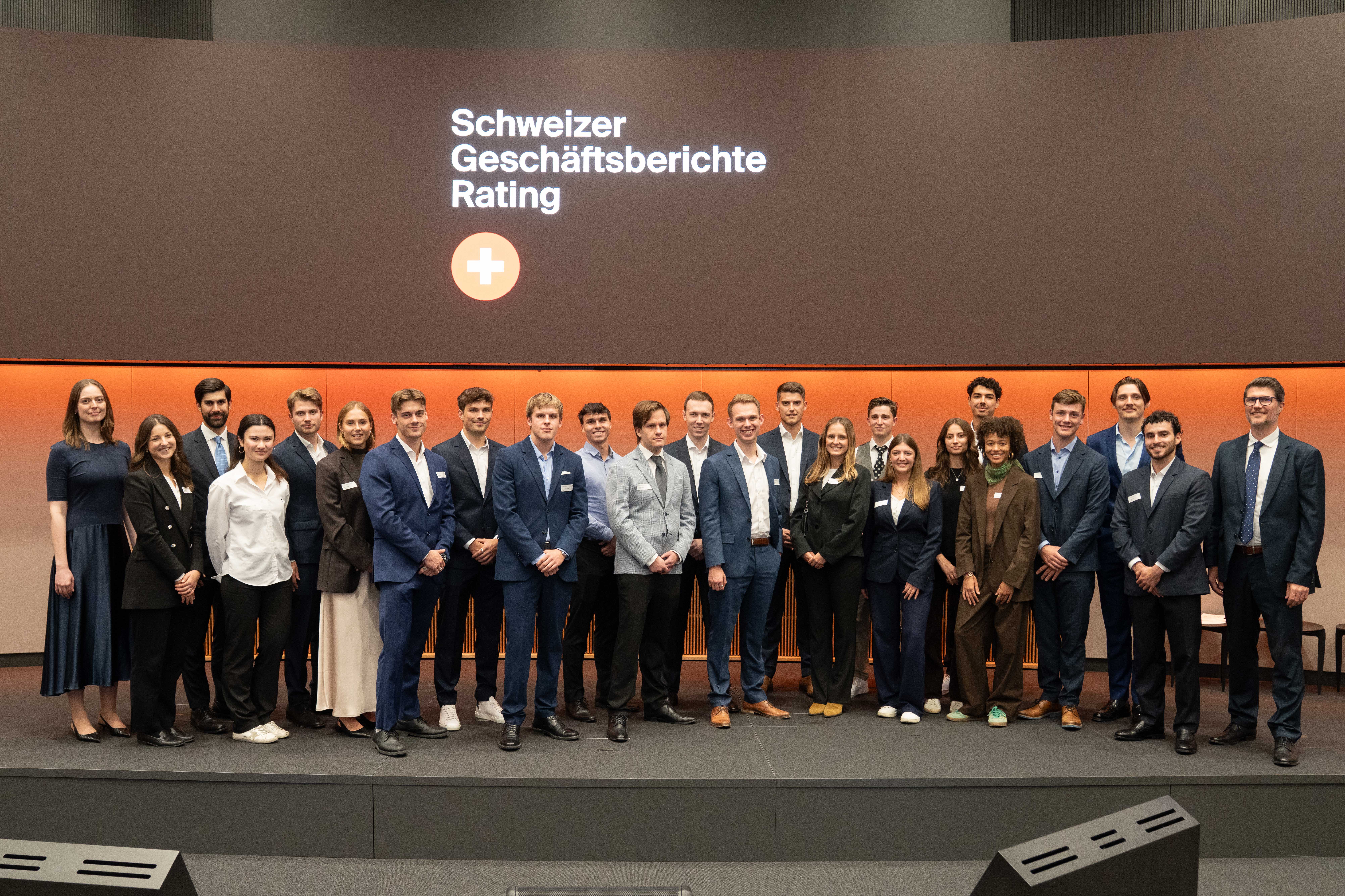 The rating management with a delegation of UZH students at the award ceremony of the Swiss Annual Report Rating 2025.
